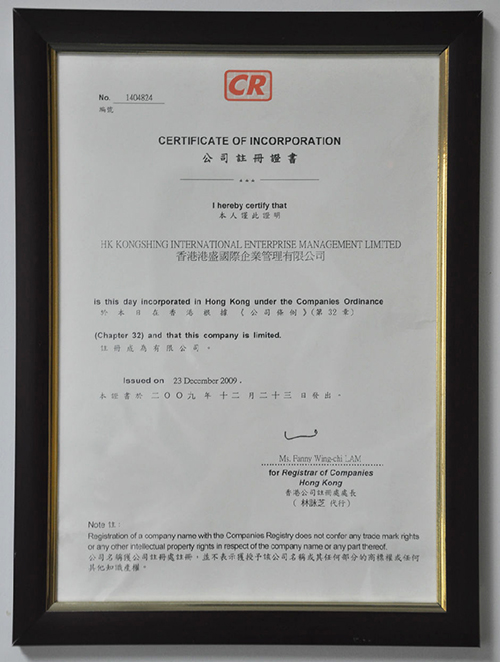 港盛注冊資質(zhì)證書