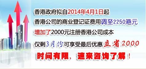 事實(shí)上稅務(wù)局已經(jīng)在3月4日發(fā)布了確切的通知,這就是說,3月份將是注冊香港公司低價(jià)的最后一月,而截至目前時(shí)間僅剩下三周。另外一點(diǎn)是因?yàn)樽韵愀酃疽话阈枰?天左右的時(shí)間,所以我們不排除有些代理公司會(huì)在3月下旬提前上漲費(fèi)用。也即是說,如能在3月底之前注冊香港公司,將會(huì)節(jié)省至少2000元的費(fèi)用。