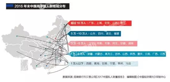 招行和貝恩的報告認為,2014—2016年,高凈值人群的地域分布延續(xù)了2008年以來的集中度不斷下降的趨勢,區(qū)域間分布更為平衡。