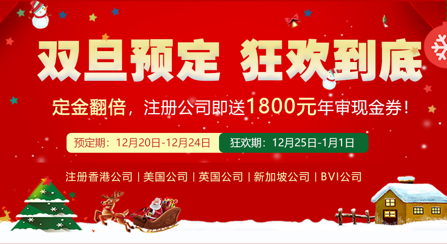 12月25日-1月1日,注冊香港、海外公司即送1800元年審現(xiàn)金券。